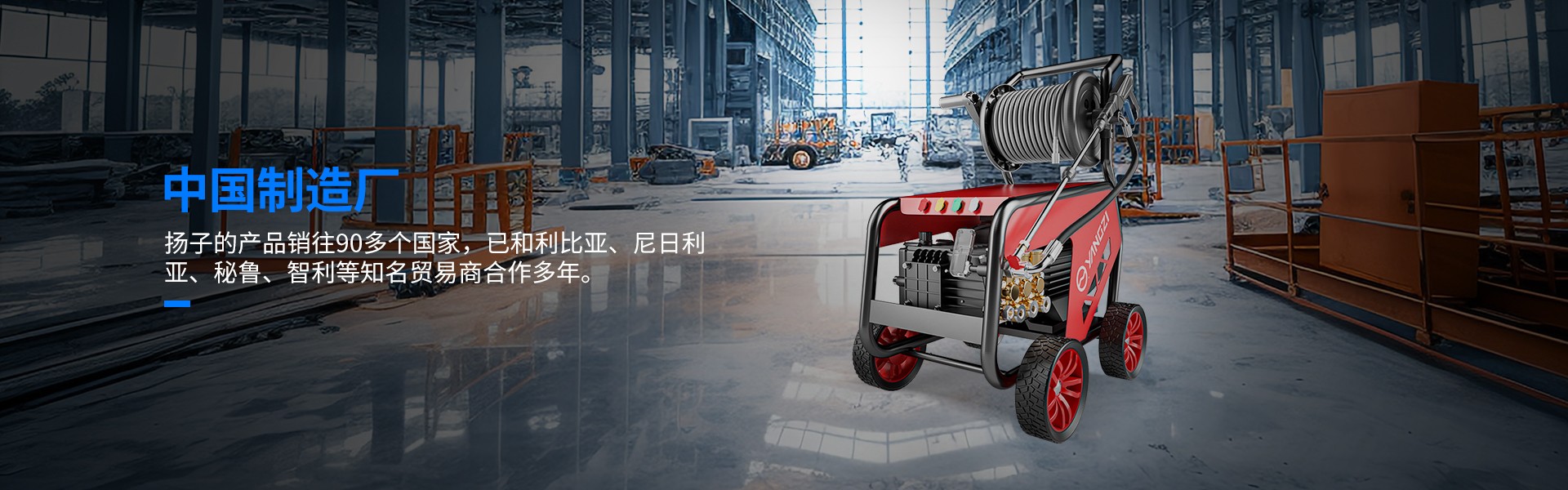 揚子專業研發生產銷售洗地機、高壓清洗機、管道疏通機、地毯清洗機等。 揚子始終奉行效率、服務、品質、誠信的原則,為客戶提供高品質的產品和一對一的優質服務。 產品銷往亞洲、歐洲、美洲、大洋洲、非洲等90多個國家和地區。同時得到了多個國家客戶的認可,擁有良好的口碑。